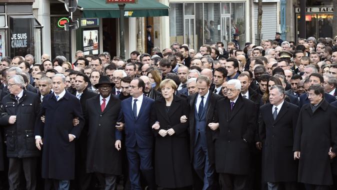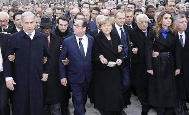 ردود غاضبة لمشاركة الأنظمة العربية مع إسرائيل في «تظاهرة باريس» ساحة المنامة منامة بوست: شهدت مواقع التواصل الاجتماعيّ، ردود أفعال غاضبة ورافضة لمسيرة باريس التي خرجت بالأمس تحت شعار «لا للإرهاب»، تعبيرًا عن الاستنكار لدوافع المشاركين فيها،
