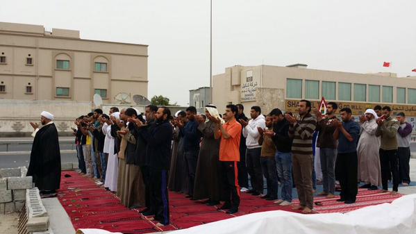 عقب الصلاة بالمساجد المُهدّمة.. المُصلّون يطالبون بالإفراج عن «الشيخ سلمان» ساحة المنامة منامة بوست: أقام عددٌ من المواطنين صلاة الظهرين، اليوم السبت 10 يناير/ كانون الثاني 2015، في مواقع المساجد المهدّمة، وذلك ضمن فعاليّات «ثورة المحراب»، التي دعا لها ائتلاف شباب ثورة 14 فبراير