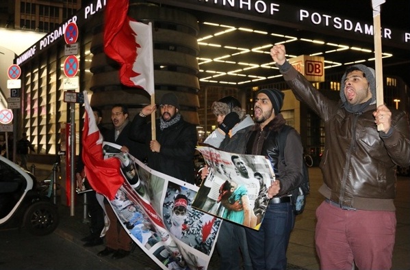 اعتصام نشطاء بحرانيّين ببرلين احتجاجًا على دعم النظام الحاكم ساحة المنامة منامة بوست: اعتصم عدد من النشطاء البحرانيّين في العاصمة الألمانيّة برلين، أمس الجمعة 12 ديسمبر/ كانون الأوّل 2014، أمام فندق The Ritz-Carlto، مطالبين الوفود الدبلوماسيّة التي شاركت في احتفال اليوم