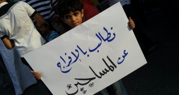 وقفة تضامنيّة تطالب بالإفراج عن النساء المعتقلات ساحة المنامة منامة بوست: شارك عددٌ من المواطنين مساء اليوم الثلاثاء 2 ديسمبر/ كانون الأوّل 2014، في الوقفة التضامنيّة التي دعا إليها ائتلاف شباب ثورة 14 فبراير ببلدة السنابس، وذلك احتجاجًا على استمرار السلطات البحرينيّة