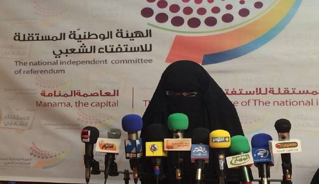 رئيسة الهيئة الوطنيّة: سيتمّ رفع نتائج «الاستفتاء الشعبيّ» للأمم المتّحدة ساحة المنامة منامة بوست: قالت رئيسة الهيئة الوطنيّة المستقلّة للاستفتاء الشعبيّ الأستاذة بلقيس رمضان، إنّه سيتم رفع نتائج الاستفتاء الشعبيّ الذي شهدته البحرين خلال يومي 21 و22 نوفمبر/ تشرين الثاني الجاري،