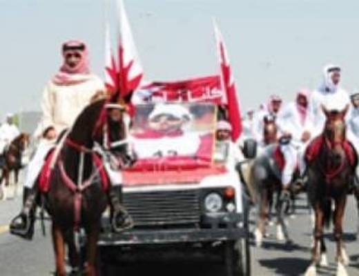النظام يفشل في حملة «كلّنا ناصر بن حمد» أمام نشاط المعارضة البحرينيّة ساحة المنامة منامة بوست: خرج عددٌ من مربِّي الخيول وأصحاب الاسطبلات، في مسيرةٍ يوم أمس السبت 11 أكتوبر/ تشرين الأوّل 2014، بعنوان «كلّنا ناصر بن حمد» تضامنًا ودعمًا لنجل ملك البحرين، ناصر بن حمد آل خليفة