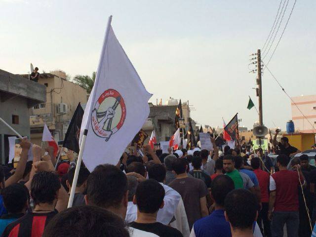 تظاهرات بقرية سفالة شعارها «عيدنا يوم تحرير أرضنا» ساحة المنامة منامة بوست (خاص): خرج عددٌ من أهالي قرية سفالة بجزيرة سترة، في مسيرة جماهيريّة ثوريّة بعنوان «عيدنا يوم تحرير أرضنا»، وذلك عقب أدائهم صلاة عيد الأضحى المبارك، مطالبين بإسقاط النظام