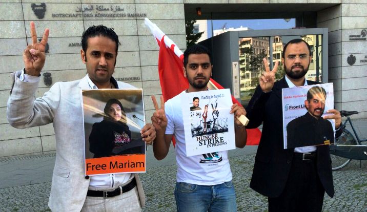 اعتصام أمام السفارة البحرينيّة في برلين للمطالبة بالإفراج عن الخواجة وابنته ساحة المنامة منامة بوست (خاص): اعتصم عددٌ من النشطاء البحرانيين وبعض أعضاء الجاليات العربيّة والإسلاميّة، يتقدّمهم نائب رئيس مركز البحرين لحقوق الإنسان يوسف المحافظة، ظهر اليوم الأربعاء