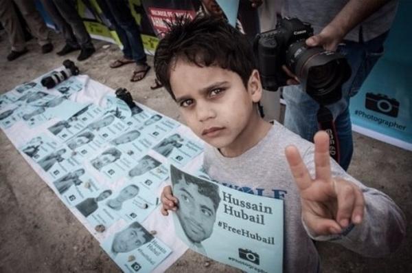 افتتاح معرض «عيون وراء القضبان» تضامناً مع المصوّرون المعتقلون ساحة المنامة منامة بوست (خاص): انطلق مساء اليوم الأحد 13 يوليو / تمّوز 2014، معرض الصور للمصوّرين المعتقلين «أحمد حميدان، حسين حبيل، أحمد الموسويّ» القابعين داخل السجون البحرينيّة، بمشاركة عدد كبير من النشطاء