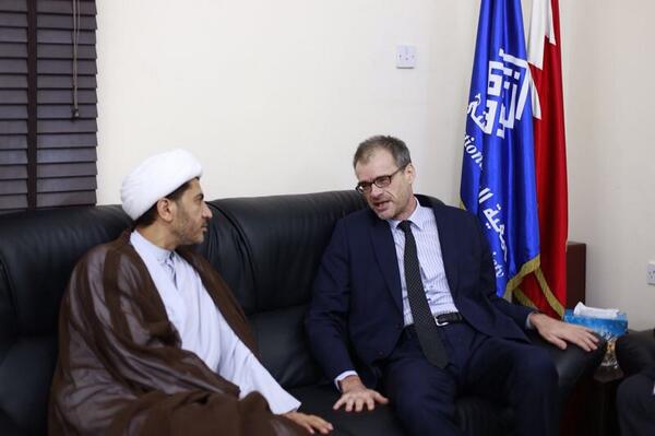 بعد طرد مبعوث أمريكا ..سفير فرنسا يزور مجلس «الوفاق» الرمضانيّ ساحة المنامة منامة بوست (خاص): قام سفير فرنسا لدى المنامة، كريستيان تستو، مساء أمس الأحد 13 يوليو / تموز 2014، بزيارة إلى مجلس «جمعية الوفاق» الرمضانيّ، حيث اجتمع مع أمين عام الجمعيّة علي سلمان، وعدد من القيادات المعارضة