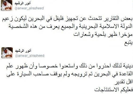 رئيس المنتدى الخليجيّ «يُحذّر» من «داعشيّة» عقيد المخابرات السابق «عادل فليفل» ساحة المنامة منامة بوست (خاص): أكّد رئيس المنتدى الخليجيّ لمؤسّسات المجتمع المدنيّ «أنور الرشيد»، وجود تقارير عن صلة عقيد المخابرات السابق عادل فليفل بـ«تنظيم داعش» الإرهابيّ، ولم يوضح «الرشيد»