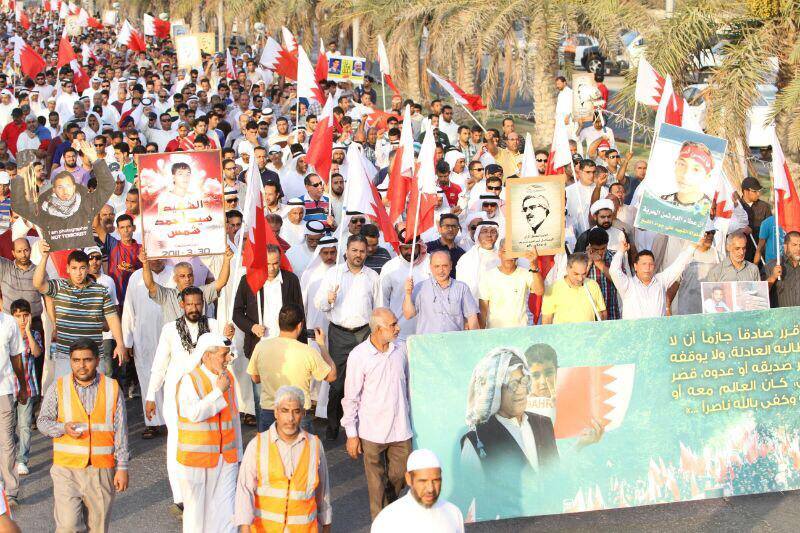 السنابس تشهد مسيرة «جمعة عصيان الشهيد» وسط قنابل السلطات السامة والغازية ساحة المنامة منامة بوست (خاص): انطلقت عصر اليوم الجمعة « 20 يونيو / حزيران 2014 »، العديد من التظاهرات والمسيرات الشعبيّة الحاشدة المتّجة إلى منطقة السنابس، والتي حملت شعار «جمعة عصيان الشهيد»
