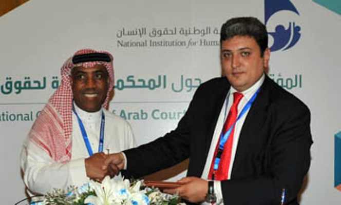الوطنيّة لحقوق الإنسان توقّع «مذكّرة تفاهم» مع «المنظّمة العربيّة لحقوق الإنسان» ساحة المنامة منامة بوست: وقّعت المؤسّسة الوطنيّة لحقوق الإنسان، أمس الأحد 25 مايو / أيّار 2014، مذكرة تفاهم مع المنظّمة العربيّة لحقوق الإنسان، وذلك على هامش المؤتمر الدوليّ حول المحكمة العربيّة لحقوق الإنسان