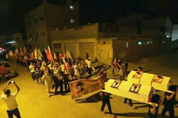 تظاهرات شعبيّة وفاءً للشهيدين.. وغداً تشييع الشهيد العكريّ ساحة المنامة منامة بوست: شهدت مدن البحرین وبلداتها، مساء الیوم السبت 17مایو / أيّار 2014، عدداً من المسيرات والتظاهرات الشعبيّة الحاشدة والغاضبة، وفاءً للشهيدين «علي فيصل و عبدالعزيز العبّار»، وتضامناً مع أسرهم