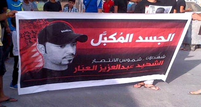 غضب في الشارع البحريني على احتجاز جثمان الشهيد العبار ساحة المنامة منامة بوست: شهدت مدن البحرين وبلداتها، أمس الثلاثاء 29 أبریل/نیسان 2014، مسیرات جماهیریّة غاضبة، استنكاراً لاستمرار السلطات البحرينيّة احتجاز جثمان الشهید عبد العزیز العبّار