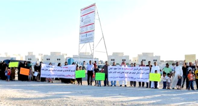 أهالي الدير والسماهيج يعتصمون تأكيداً لأحقيّتهم بالوحدات السكنيّة ساحة المنامة منامة بوست: اعتصم عدد من أصحاب الطلبات الإسكانيّة من أهالي قريتي الدير وسماهيج للمرة التاسعة، أمس السبت 5 أبريل/ نيسان 2014 أمام المشروع الإسكانيّ، للمطالبة بأحقيّتهم في مشروع الدير