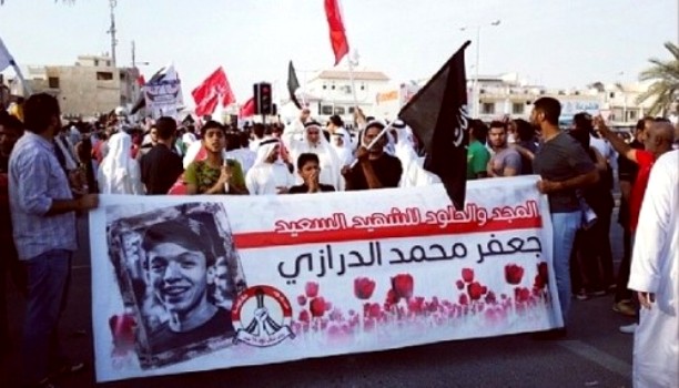 السجن 15 عام على الشهيد جعفر الدرازي ساحة المنامة منامة بوست: قضت المحكمة البحرينيّة، اليوم الأحد 6 أبريل / نيسان بالسجن لمدّة 15 عاماً على الشهيد جعفر الدرازي وزميله.