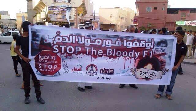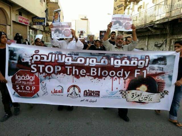قمع عنيف لفعاليّة «أوقفوا فورمولا الدم» يوم أمس ساحة المنامة منامة بوست (خاص): انطلقت مسيراتٌ ثوريّة یوم أمس الجمعة ( 4 أبریل/ نیسان 2014 )، من مختلف البلدات المحيطة بضاحية السيف التجارية غرب المنامة، بمشارکة جماهیريّة حاشدة