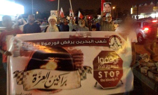 تظاهرات حاشدة ترفض إقامة الفورمولا في البحرين ساحة المنامة منامة بوست (خاص): شهد عدد من مدن البحرین وبلداتها یوم أمس السبت 29 مارس / آذار 2014 مسيرات جماهيريّة حاشدة، لمناهضة سباقات فورمولا واحد، والتي ستجري في البحرين