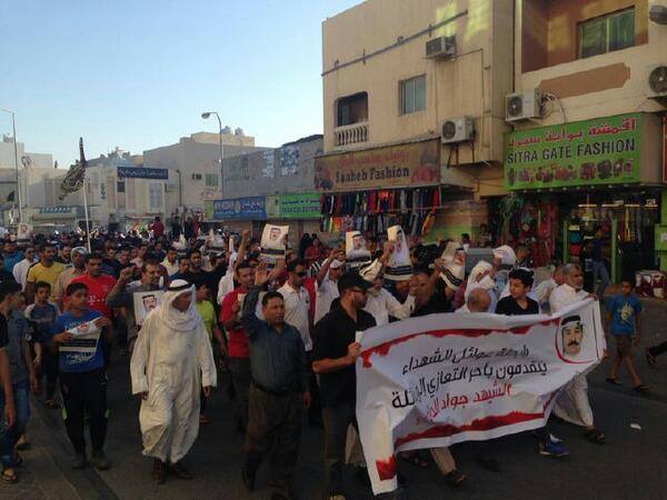 المرتزقة تهاجم المشاركين في ختام عزاء الحاوي ساحة المنامة منامة بوست (خاص): هاجمت المرتزقة، عصر اليوم السبت 22 مارس ، المشاركين في مراسم ختام عزاء الشهيد الحاج جواد الحاوي «48 عاما» وسط «سترة». حيث قامت بإطلاق الغازات السامّة