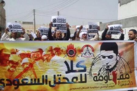 مسيرات رفض الاحتلال السعودي يوم أمس تقمع بـ «الشوزن» ساحة المنامة منامة بوست (خاص): أطلقت قوات المرتزقة أمس الخميس 13 مارس القنابل المسيلة للدموع، ورصاص الشوزن المحرّم دوليّاً، ضدّ المتظاهرين في عدة مناطق أثناء إحيائهم الذكرى الثالثة