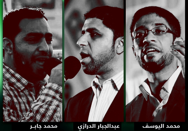 النيابة العامة تجدّد حبس 3 منشدين لمدة 38 يوم ساحة المنامة منامة بوست (خاص): أمرت النيابة العامة اليوم الاثنين 24 فبراير 2014 بتجديد حبس الرادودين «عبدالجبار الدرازي ومحمد جابر الدرازي والشاعر محمد اليوسف»