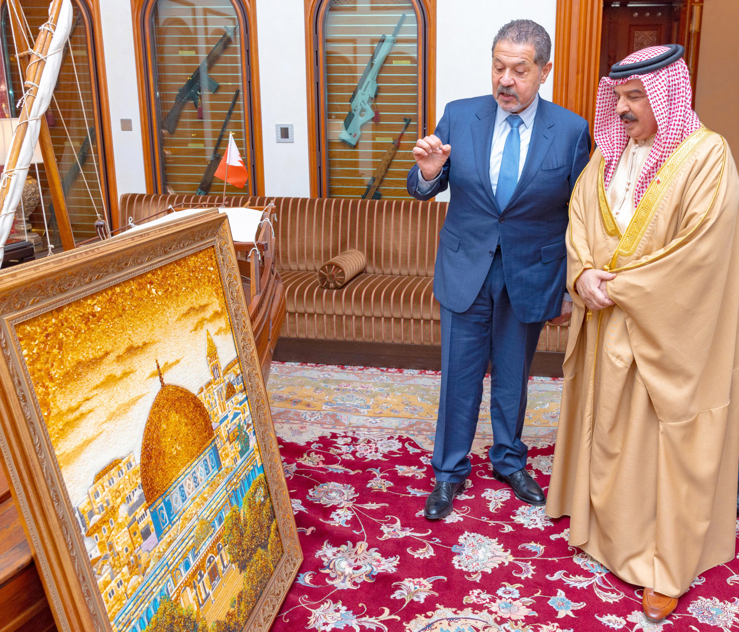 ممثّل الرئيس الفلسطينيّ «يُهدي حاكم البحرين لوحة فنيّة للمسجد الأقصى بعد استقباله كبار المسؤولين الصّهاينة» – «وكالة بنا» ساحة المنامة منامة بوست: استقبل حاكم البحرين «حمد عيسى الخليفة»؛ «ياسر محمود عباس»، الممثّل الشخصيّ للرئيس الفلسطينيّ «محمود عباس» في «قصر الصافريّة»، وبحضور السّفير الفلسطينيّ لدى المنامة «طه عبد القادر»