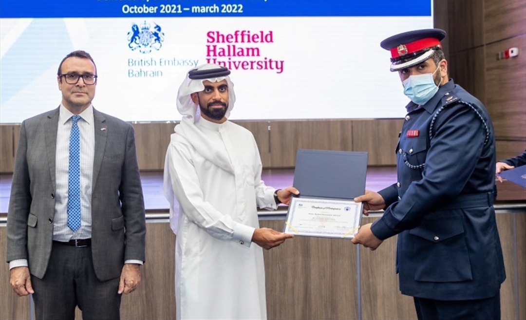 منامة بوست: أقامت الإدارة العامة لتنفيذ الأحكام والعقوبات البديلة حفل تخريج دورة «العقوبات البديلة»، برعاية نجل وزير الداخليّة «خالد راشد الخليفة»المدير العام للإدارة، بحضور نائب السفير البريطاني «ستيوارت سمرز»، وبالتعاون مع السفارة البريطانيّة في البحرين، وجامعة «شيفيلد هالام» البريطانيّة.