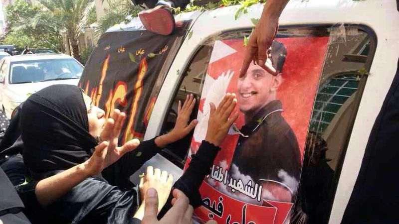 منامة بوست (خاص): شيّع عشرات آلاف الغاضبين في جزيرة سترة، جنوب العاصمة المنامة اليوم الأحد 18 مايو/ أيار 2014، جثمان الشهيد علي فيصل العكراوي – 19 عاماً، والذي راح ضحيّة حادث انفجارٍ غامضٍ يوم الجمعة الماضي.