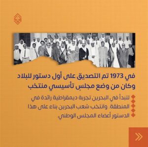 وأكّدت الجمعيّة أنّ «هذا المرسوم الأميريّ شكّل أولى ملامح الأزمة السياسيّة المتجذّرة التي تعيشها البلاد حاليًا»، إذ تمّ التصديق على أوّل دستورٍ للبلاد عام  «1973»، وكان من وضع مجلسٍ تأسيسيّ منتخب، لتبدأ في البحرين تجربة ديمقراطيّة رائدة في المنطقة، وانتخب شعب البحرين بناءً على هذا الدستور أعضاء المجلس الوطنيّ – على حدّ وصفها.