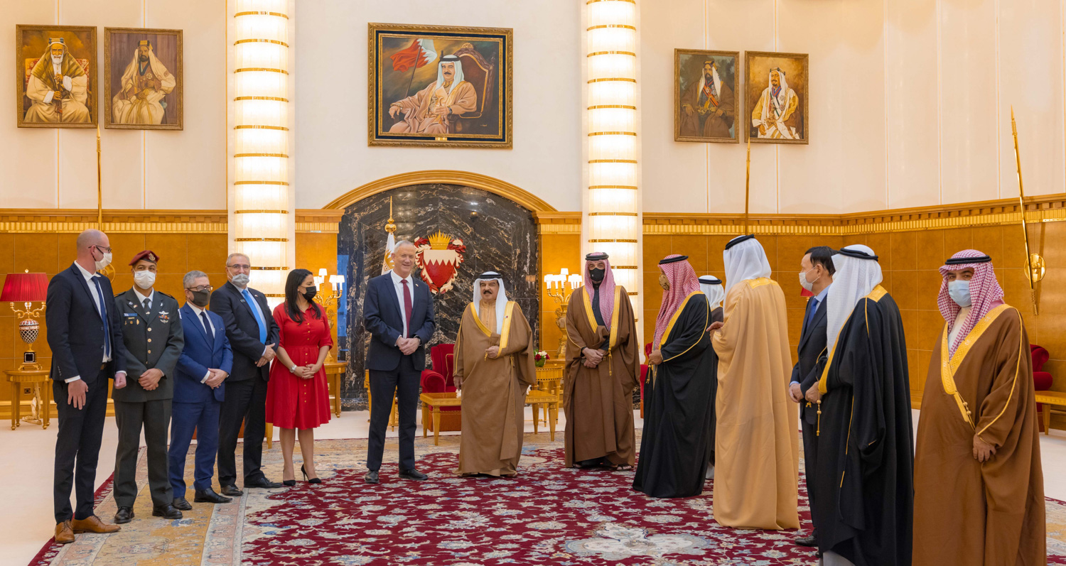 ورحّب حاكم البلاد بوزير الدّفاع الصهيونيّ والوفد المرافق له، واستعرض معه العلاقات الثنائيّة ومسار التعاون المشترك وسبل دعمه وتنميته في مختلف المجالات، في إطار اتفاقيّة التطبيع بين الجانبين، وبما يسمّى «اتفاق مبادئ إبراهيم» – بحسب وكالة أنباء البحرين الرسميّة «بنا».