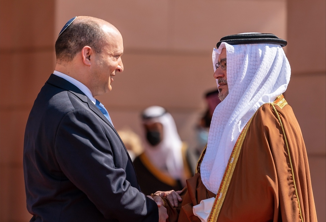 وكان رئيس وزراء الكيان الصهيونيّ «نفتالي بينيت»، قد قام بزيارةٍ إلى البحرين بتاريخ 14 فبراير/ شباط 2022، وهي أول زيارةٍ رسميّة لمسؤولٍ كبيرٍ في الكيان إلى البحرين، وجاءت بالتّزامن مع الذّكرى الحادية عشرة لثورة 14 فبراير/ شباط في البحرين، وقال مكتب بينيت في بيانٍ آنذاك، إنّ الزّيارة تأتي تلبيةً لدعوة وليّ عهد البحرين رئيس الوزراء «سلمان حمد الخليفة».