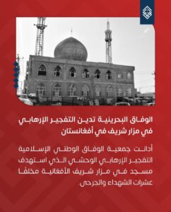 جمعيّة الوفاق البحرينيّة المُعارضة «تُدين التّفجير الإرهابيّ في مسجد في مزار شريف في أفغانستان»