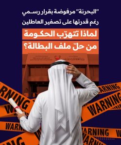 وأشارت إلى أنّ التحرّكات الحكوميّة الأخيرة لعرض «فرص وظيفيّة» على العاطلين، تأتي لتؤكّد استمرار الحكومة في استبعاد خيار البحرنة مجدّدًا، وعدم الجديّة في حلّ هذا الملفّ بشكلٍ نهائيّ، خاصّة مع هيمنة التّعاطي بطريقة تسويقيّة وإعلاميّة مع ملفّ مُلّح، وضخّ برامج تدريبيّة لتقطيع الوقت.