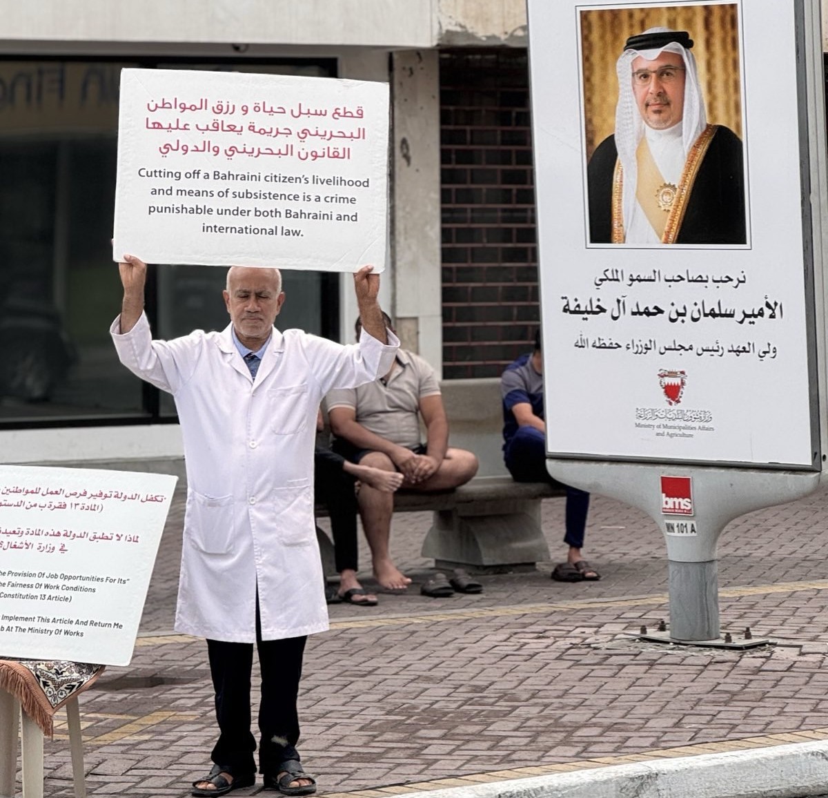 منامة بوست: أقدمت السُّلطات الأمنيّة البحرينيّة على اعتقال المواطن المفرَج عنه «محمد السّنكيس»، لاعتصامه منذ عشرة أشهر أمام مقرّ وزارة الأشغال العامّة، للمطالبة بحقّه في إعادته لوظيفته السّابقة بعد الإفراج عنه بعفوٍ ملكيّ.