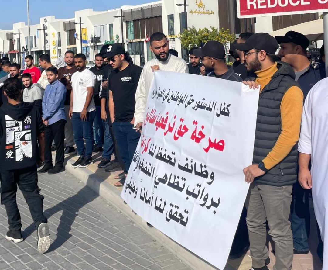 وكان عشرات من العاطلين من البحرينيين نفّذوا اعتصامًا سلميًّا أمام وزارة العمل منذ بداية العام 2026، عبّروا فيها عن استيائهم من تدهور الأوضاع الاقتصاديّة والمعيشيّة في البحرين، وتفاقم مشكلة البطالة وضعف الرواتب وارتفاع الأسعار والغلاء في البلاد، وأكّدوا أنّ هذا الاعتصام مشروع للمطالبة بحقوقهم الأساسيّة والإنسانيّة، فيما أقدمت السلطات الأمنيّة على ملاحقة الشّباب الباحثين عن العمل، وفرضت طوقًا أمنيًا على أماكن تجمّعهم واعتقلت عددًا منهم.
