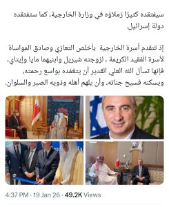 منامة بوست: نعت وزارة خارجيّة الكيان الصهيونيّ سفيرها السّابق في البحرين «إيتان نائيه»، والذي رحل يوم 19 يناير/ كانون الثاني 2026، ويعدّ أول سفيرٍ للكيان لدى المنامة بعد توقيع اتفاقيّة التطبيع عام 2020.