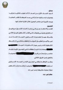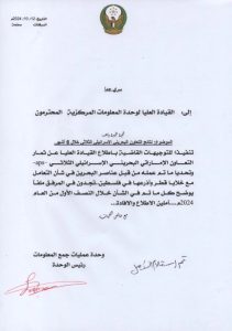 وذكرت وثيقة تحت تصنيف «سريّ جدًا» ومؤرّخة في أكتوبر/ تشرين الأول 2024، موجّهة إلى «القيادة العليا لوحدة المعلومات المركزيّة» في الإمارات، بعنوان «نتائج التّعاون الإماراتيّ البحرينيّ الصهيونيّ الثلاثيّ خلال ستّة أشهر»، تشكيل فريق استخباريّ يضمّ الإمارات والبحرين بإشراف جهاز «الموساد» – بحسب الموقع.
