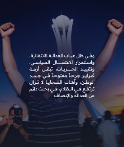 وأكّدت الجمعيّة في بيانٍ أنّه رغم مرور السّنوات لم يتمكّن النّظام من طيّ ملفّ 2011، في ظلّ استشراء سياسات الإفلات من العقاب، والتّنصّل من المسؤوليّة وغياب المُحاسبة، وهيمنة منظومة «شريعة الغاب» على مفاصل الدولة، إذ يُنكَّلُ بالمُعارض لتعبيره عن رأيه ويُحصّن الجناة بأسوار الحماية الكاملة.